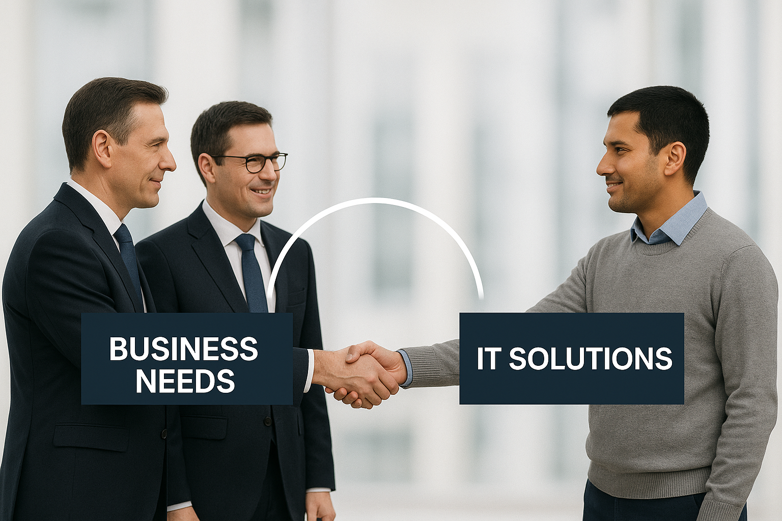 Digitization and IT transformation projects succeed only when business and technical objectives stay consistently aligned. Early integration of IT expertise in the concept phase ensures that business ideas are shaped into the best possible solutions — where customer needs, business processes and technology come together.